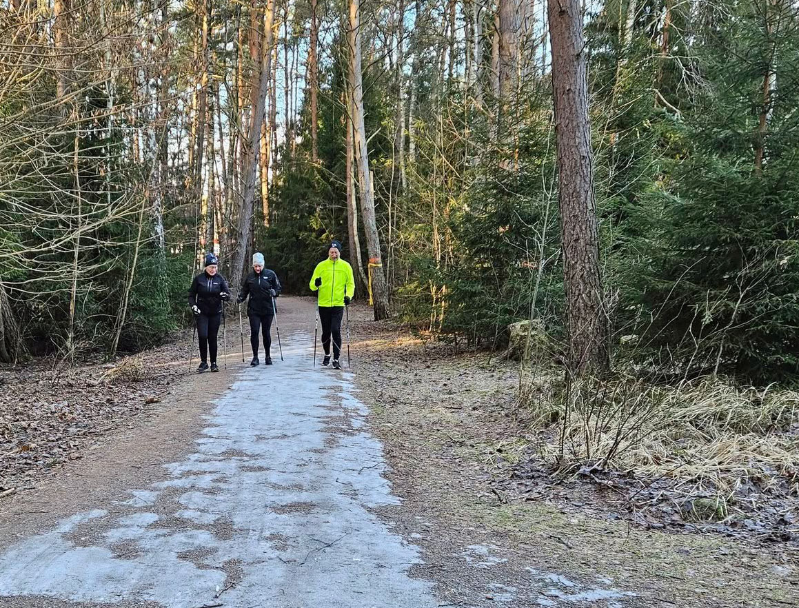 valmöjligheter. Antingen fick man gå med stavar, på en snitslad 5 km slinga runt Haninge